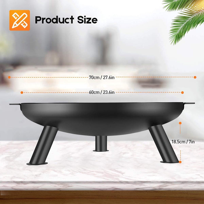 Feuerschale für Draußen 60cm Gross Feuerstelle Terrasse Fire Pit Garten Terrasse-Schale mit Griffen Hochwertig Garten Multifunktionale Feuerschale