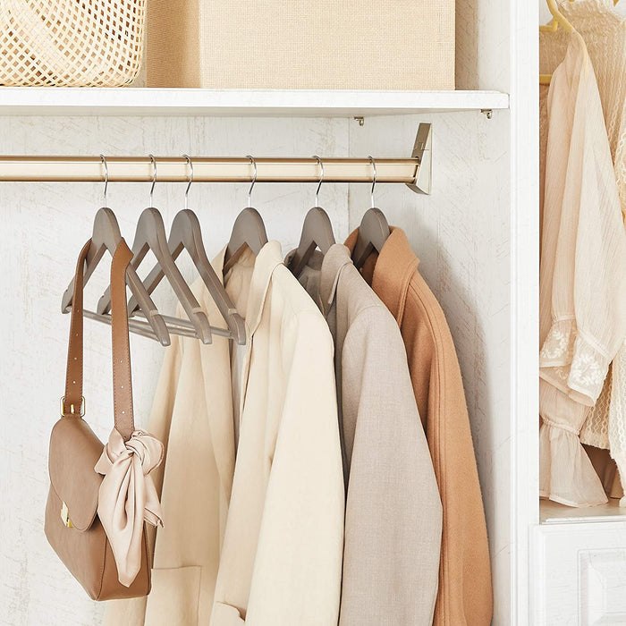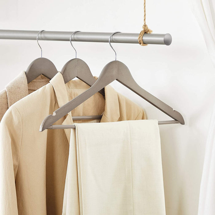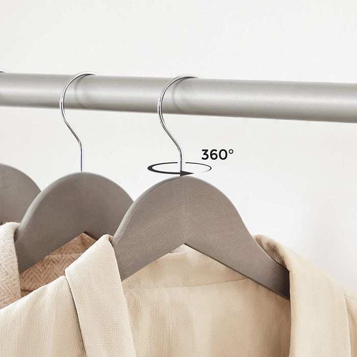 - Ein Blickfang in Ihrer Garderobe: Auf diesen Massivholz-Bügeln sehen Ihre Anzüge immer so aus, als hätten Sie sie gerade erst gekauft, und ziehen alle Blicke auf sich. Zudem verleihen der greige Farbton und die angenehm glatte Oberfläche diesen Bügeln ein elegantes sowie einzigartiges Aussehen