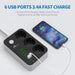Schnelle USB-Ladeanschlüsse 6 USB-Ladeanschlüsse Integriert in die intelligente Ladetechnologie, die es jedem Port ermöglicht, eine ideale Leistung von bis zu 2,4 A zu erkennen und zu liefern, beträgt die gesamte USB-Leistung bis zu 3,4 A. Sie können Ihr Mobiltelefon, Ihre Tablets und andere USB-Geräte gleichzeitig aufladen. |