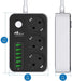 - --Hohe Qualität: Die Steckdosenleiste mit USB-Anschlüssen ist ein High-End-Produkt mit hervorragender Qualität und einzigartigem Design mit 3 Steckdosen und 6 intelligenten USB-Anschlüssen, das an allen Steckdosenleisten angezeigt wird. Industriematerial, Brandschutzstufe V0, 4 x 0,15 mm Drahtkern.
