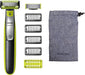 Lieferumfang: OneBlade Handstück, 2 Klingen, 4 Trimmaufsätze für das Gesicht, 1 Trimmaufsatz für den Körper, 1 Haut Schutz Aufsatz, Reisebeutel