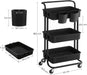 Rollwagen, 3 Ebenen, Servierwagen, Küchenwagen mit Griff, 2 kleine Einhängefächer, 2 Bremsen, Ablagefächer aus Kunststoff, einfacher Aufbau