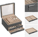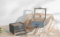 Schmuckkästchen mit Glasdeckel, Schmuckkasten mit 3 Ebenen, Schmuckbox mit 2 Schubladen, Schmuckaufbewahrung, Geschenk für Ihre Liebsten, grau