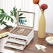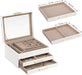 Schmuckkästchen mit Glasdeckel Schmuckkasten mit 3 Ebenen, Schmuckbox mit 2 Schubladen, Schmuckaufbewahrung, Geschenk für Ihre Liebsten, Weihnachten, weiß