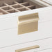 Der metallisch glänzende Griff verleiht dieser Schmuckbox sowie Ihrem Schminktisch eine elegante Note.