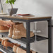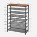 Die Kombination aus Stahl und Holzspan verleiht dem Schuhregal eine hohe Stabilität und Festigkeit.