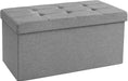 Sitzbank mit Stauraum, Sitztruhe, Sitzhocker, Aufbewahrungsbox, Fußablage, faltbar, belastbar 300 kg, 80 L, 76 x 38 x 38 cm, Leinenimitat, hellgrau